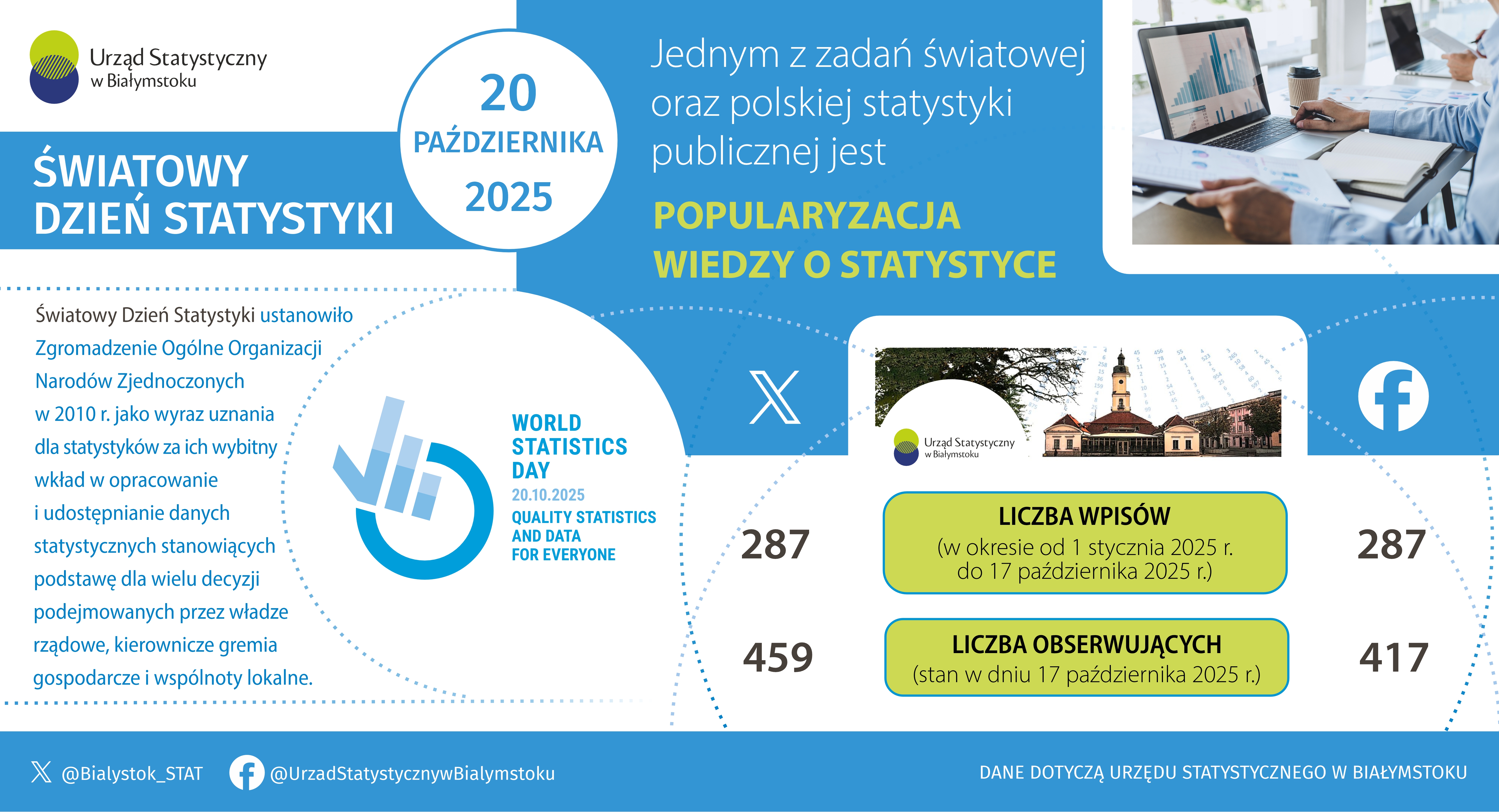 Infografika - Światowy Dzień Statystyki - 20 października A A A 17.10.2025 Pliki do pobrania Infografika - Światowy Dzień Statystyki - 20 października. Plik w formacie PDF 1.08 MB Archiwum 2024 Infografika - Europejski Dzień Statystyki - 20 października 2023 Infografika - Europejski Dzień Statystyki - 20 października 2022 Infografika - Europejski Dzień Statystyki - 20 października 2021 Infografika - Europejski Dzień Statystyki - 20 października 2019 Infografika - Europejski Dzień Statystyki - 20 października 2018 Infografika - Europejski Dzień Statystyki - 20 października 2017 Infografika - Europejski Dzień Statystyki - 20 października 2016 Infografika - Europejski Dzień Statystyki - 20 października